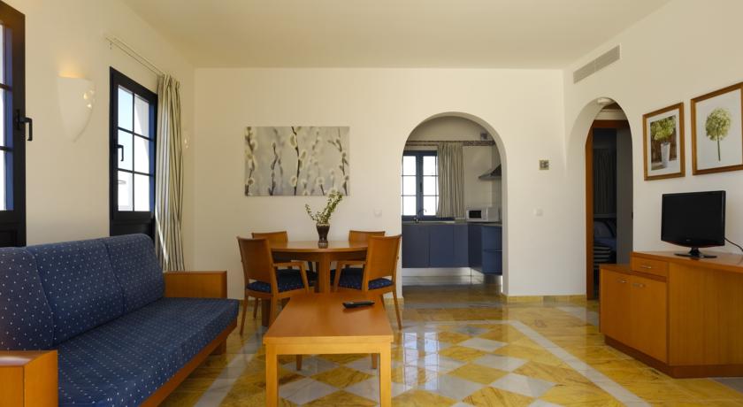 Las villas de estilo mediterráneo disponen de 2 dormitorios, cocina con nevera y microondas, así como amplia zona de estar con TV y sofá cama. Hay aire acondicionado en la zona de estar y en el dormitorio principal.