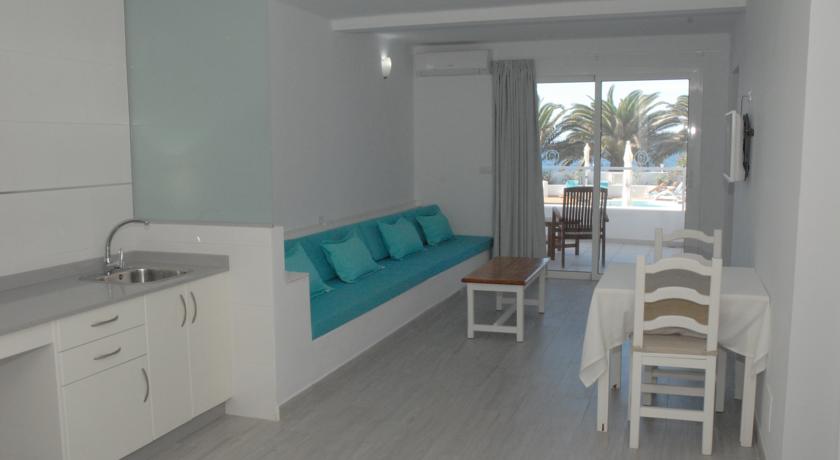 Los apartamentos, luminosos y funcionales, disponen de una pequeña zona de cocina con nevera y hervidor y una sala de estar amplia con TV y sofá.